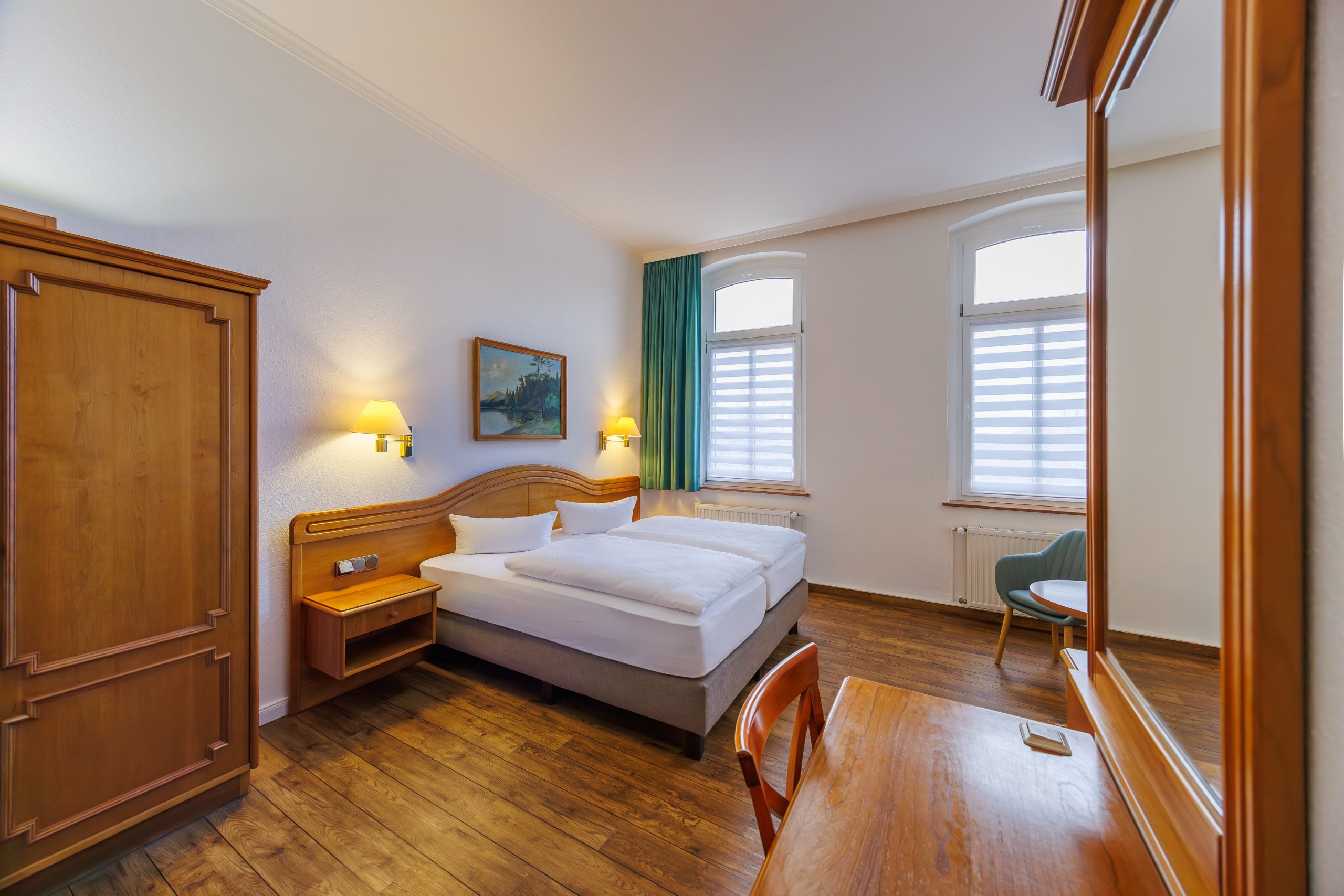 Alle Doppelzimmer sind sehr geräumig und haben ein separates Bad mit Dusche, WC und Föhn. Jedes Zimmer ist mit einem Fernseher ausgestattet und natürlich haben Sie kostenfreien Zugang zum hauseigenen W-LAN. In den Zimmern befinden sich auch weitere Sitzgelegenheiten, wie zum Beispiel ein Sofa oder Sessel und ein Tisch. Unsere Komfort-Zimmer bieten Ihnen mehr Platz und sind in unserem Hotel extra ruhig gelegen.